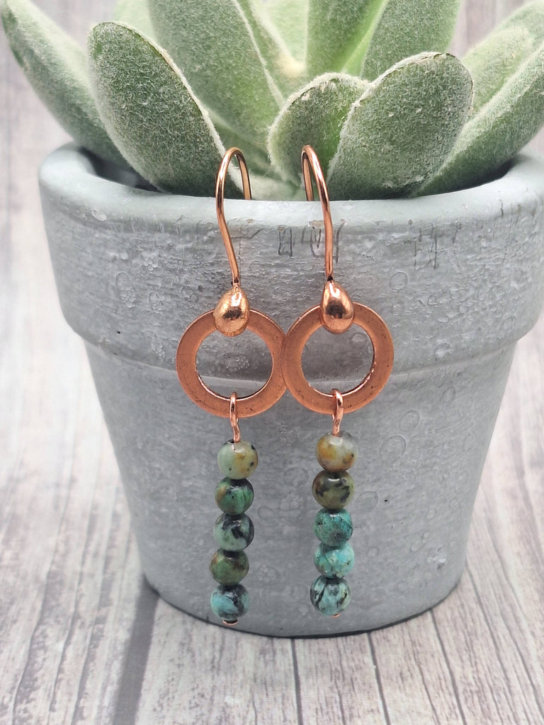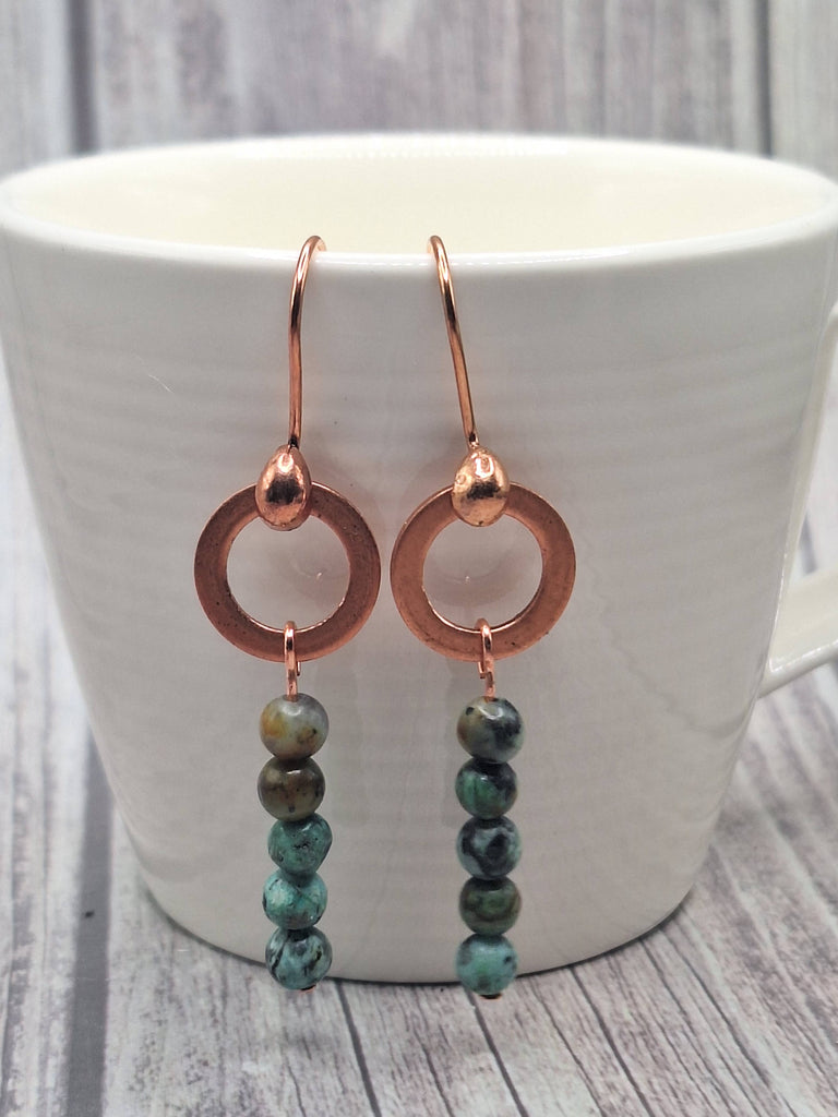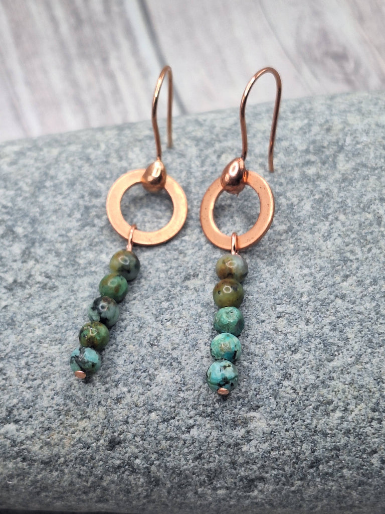 Earrings - Boho Copper Ring with African Turquoise Beads