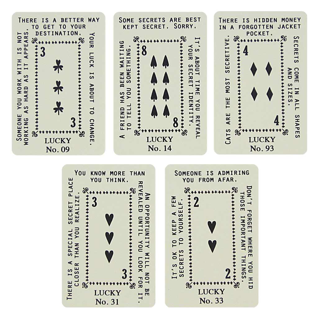 This card has 5 fortunes to choose from that will brighten someone’s day. Pick one to reveal the future. Fortunes are attached to the card with a handy paperclip.