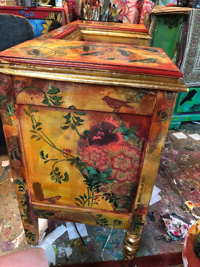 Muckabout's featured furniture painter decorates in this maximalist Boho style with DIY Chalk Paints, texture, glitter, transferred images, 3d mould, stencilling and so much more. Many hours of work go into each piece of furniture. Furniture is found locally and turned into these upcycled treasures for your home.