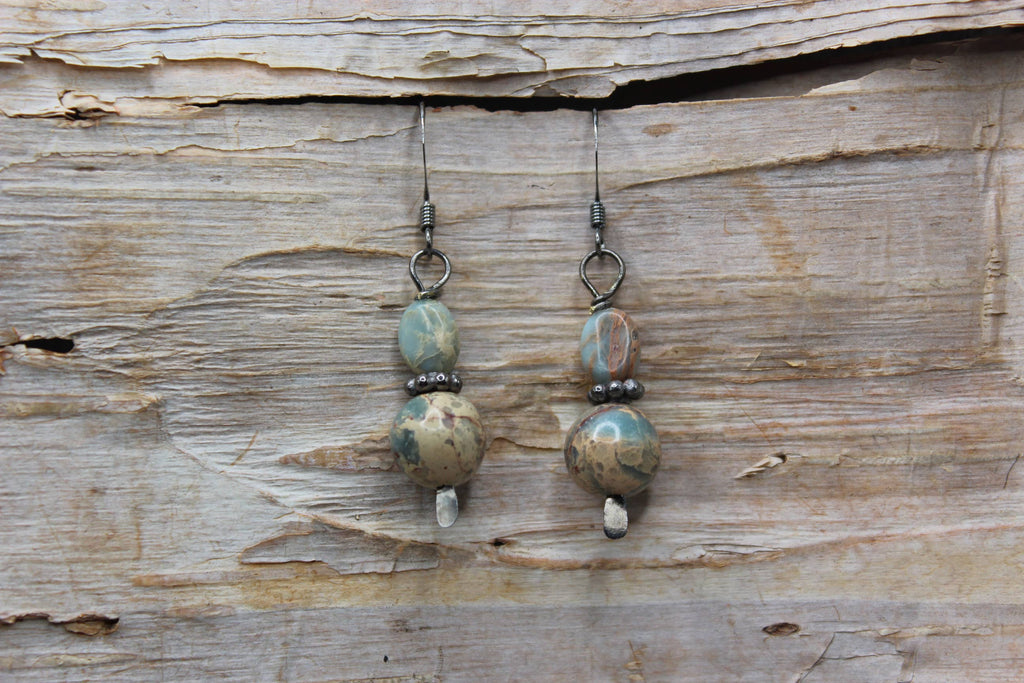 Earrings - Natural Jasper and Gunmetal Earrings – Earth and Sky Tones