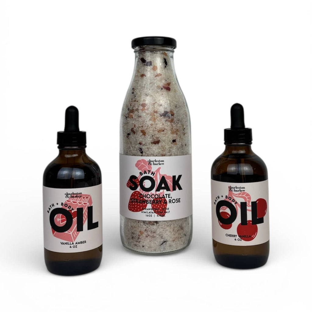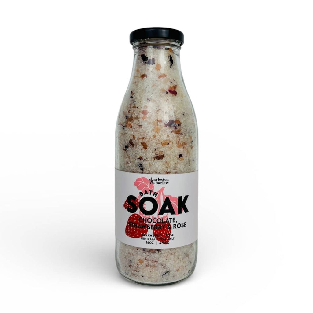 Indulge in a decadent soak with our Chocolate, Strawberry & Rose Bath Soak. Infused with the scents of chocolate, sweet strawberry and romantic rose, this bath salt will leave your skin soft and rejuvenated. Treat yourself (or a loved one) to a luxurious bath experience. Pour approximately 1/4 cup into running bath water. Soak. Wine optional!
