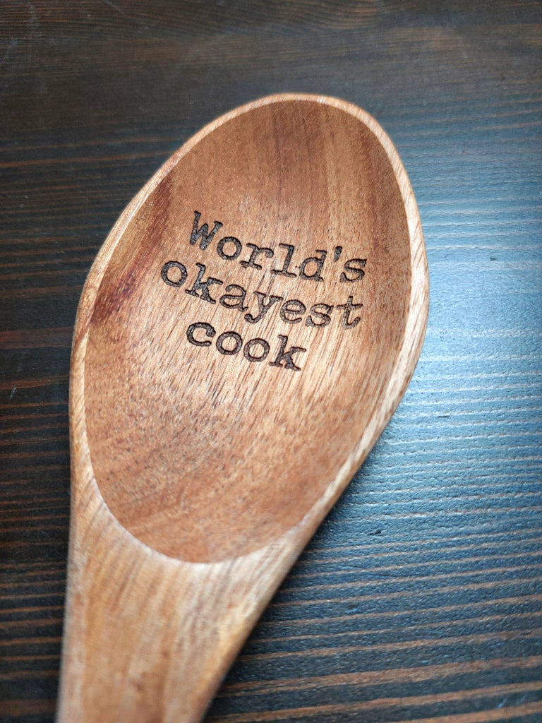 Our Wooden Spoons are made from Beech Wood and are treated with a protective oil to enhance the grain of the wood as well as protection. The designs are laser engraved into the wood and are not a decal or paint that can chip off.